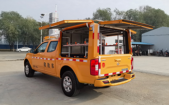 皮卡式自來水管道工程應急搶險搶修車:為適應自來水管網管道應急搶修作業(yè)的需要,針對搶修作業(yè)工具的存放需要及工作特點,本公司研制出新皮卡式應急搶險搶修專用車:皮卡式帶壓堵漏現(xiàn)場應急搶險搶修車。符合外出搶修工具的存放,且外出速度快,效率高,可稱為“搶修110”。