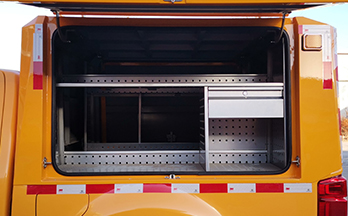 2. 廂體兩側(cè)采用消防卷簾門或上掀門,后部為對(duì)開(kāi)門或上掀門結(jié)構(gòu),取放設(shè)備快捷、方便。