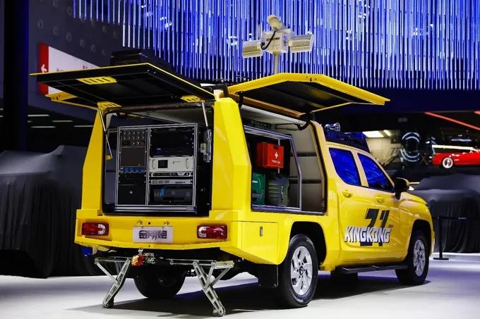 該應(yīng)通信指揮車是為應(yīng)對自然災(zāi)害而打造的車型,可實現(xiàn)多維偵測、無憂通訊、智能保障,用于水利、電網(wǎng)、通信等行業(yè)設(shè)備搶修及消防、災(zāi)害等應(yīng)急情況現(xiàn)場指揮作業(yè)。該車貨箱增設(shè)數(shù)種專業(yè)通訊設(shè)備,比如一些受到自然災(zāi)害影響的場所,原有的通信設(shè)備可能無法正常工作,會導(dǎo)致現(xiàn)場的手機(jī)網(wǎng)絡(luò)出現(xiàn)無信號、弱覆蓋、網(wǎng)絡(luò)擁塞等狀況。這時就需要應(yīng)急通信車登場,為救災(zāi)現(xiàn)場人員提供語音及上網(wǎng)功能的保障,在一些邊遠(yuǎn)地區(qū),還可以借助衛(wèi)星通信設(shè)備實現(xiàn)上述保障能力。而皮卡本身就擁有較強(qiáng)的通過性,對于需要這種設(shè)備的地區(qū)也能更加自如地應(yīng)對。