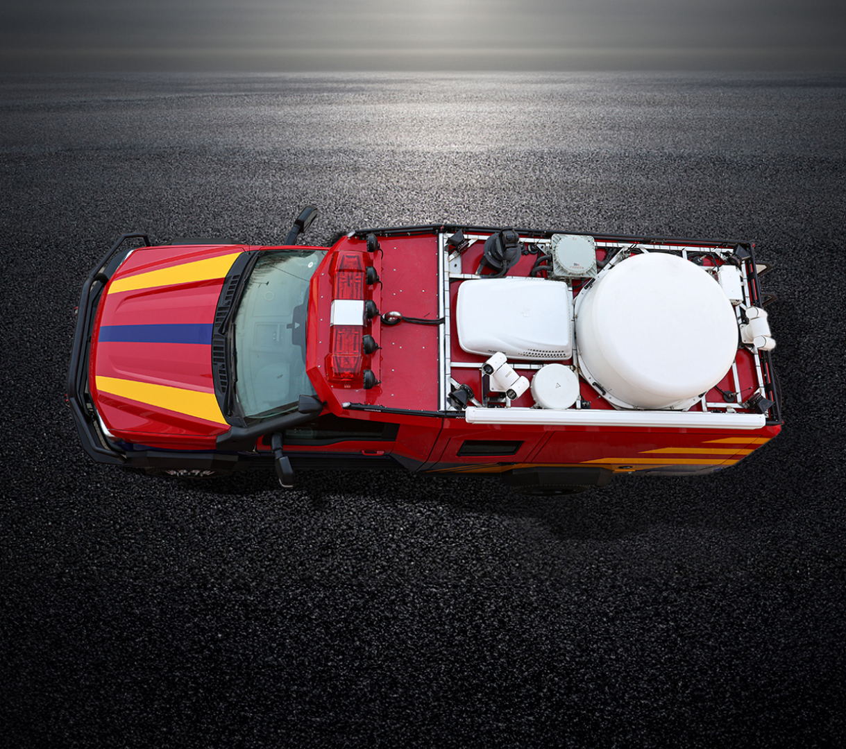 本車功能系統(tǒng),可通過各種通信手段,在災(zāi)害現(xiàn)場建立臨時指揮調(diào)度網(wǎng)絡(luò),滿足便攜式會議終端站的網(wǎng)絡(luò)需求,實現(xiàn)在任意時間、地點與部局指揮中心、總隊指揮中心音視頻的互聯(lián)互通;利用微波圖傳等,將采集到的圖像傳輸至指揮車,通過衛(wèi)星通信系統(tǒng)上傳至總隊指揮中心、部局指揮中心;能通過衛(wèi)星電話與各級指揮部進行語音通信;為現(xiàn)場指揮部提供音視頻、電源、照明等通信保障。